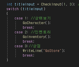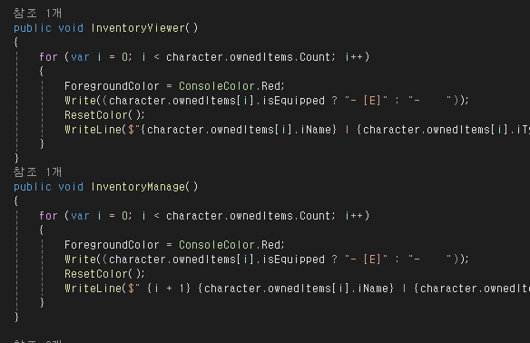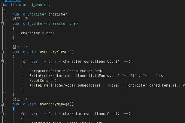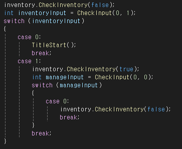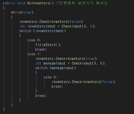 (CheckInventory는 인벤토리 내역만 띄우는 WriteLine()들의 모음이라 기능이 없다)