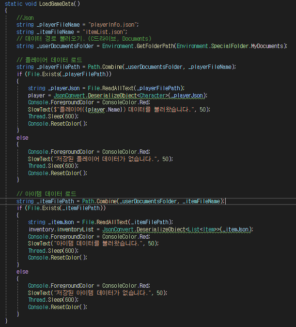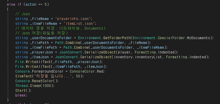 플레이어 캐릭터 클래스의 정보와 인벤토리의 정보를 각각 json 파일로 저장하는 코드를 인터넷을 참고하여 만들었다.