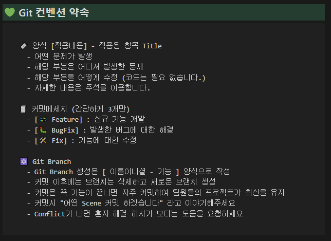 과제 발제가 진행될 때 보여주었던 Git 컨벤션을 우리도 사용하기로 하였고
