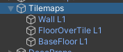 각 타일 맵은 충돌처리를 가지고 있는 벽과, 기본 바닥, 그리고 그 위에 올라가는 돌과 같은 형태의 타일들을 위한 타일맵이 준비되어 있다.