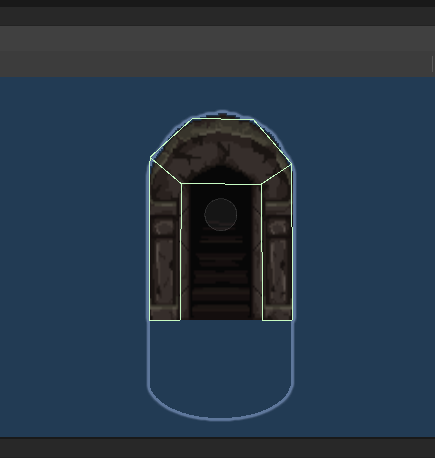 문 안으로 들어가는 시각적 연출을 위해 콜라이더는 폴리곤 콜라이더를 이용했고 그림자 머테리얼을 씌운 캡슐 스프라이트로 그림자를 만들었다.