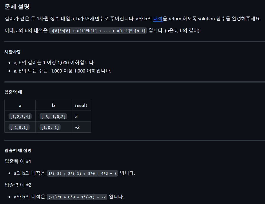 1. 오늘의 알고리즘 코드카타 - 내적