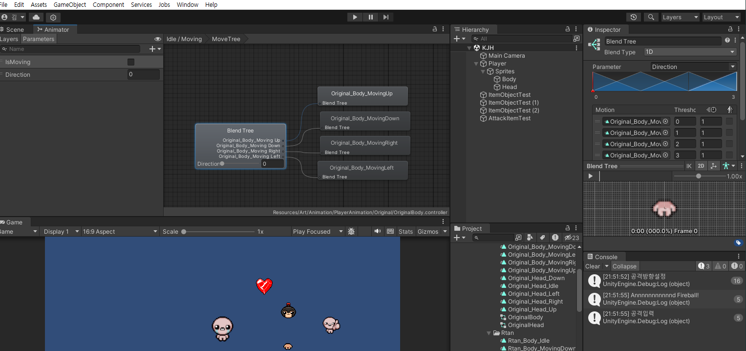 모션 처리를 깔끔하게 해보기 위해서 블랜드 트리를 이용해 보았다.