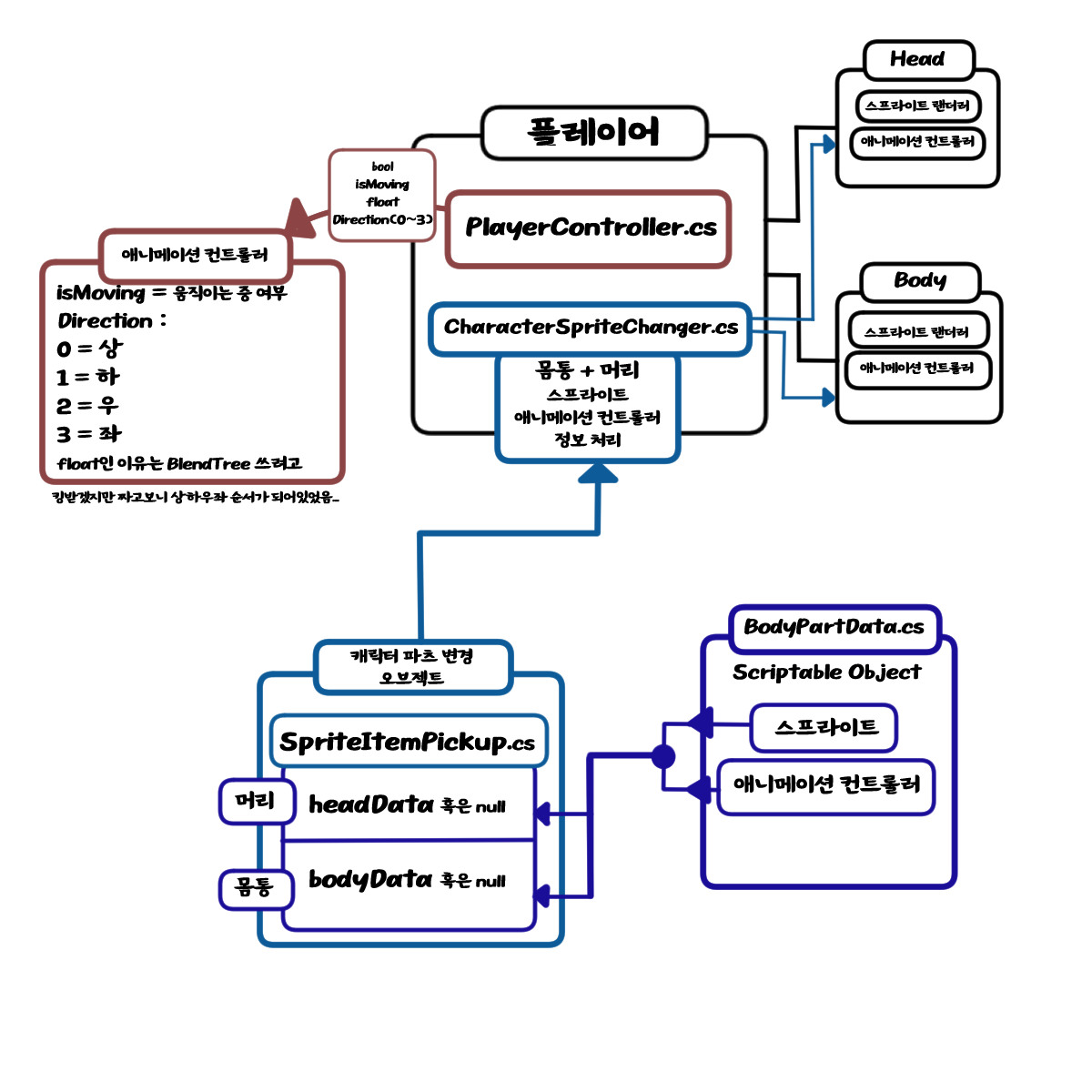 위와 같은 과정을 통해 캐릭터가 아이템을 먹으면 외형이 변경되도록 하였다.