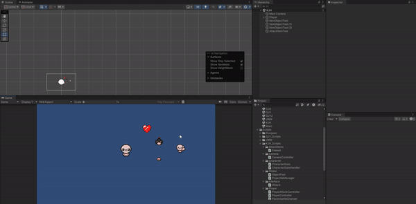 공격 기능이 바뀌어 아이템을 먹으면 완전 다른 공격 로직이 나오도록 해보려고 한다.
