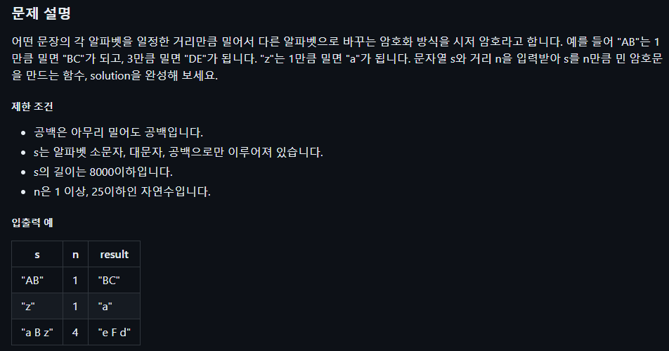 1. 오늘의 알고리즘 코드카타 - 시저 암호