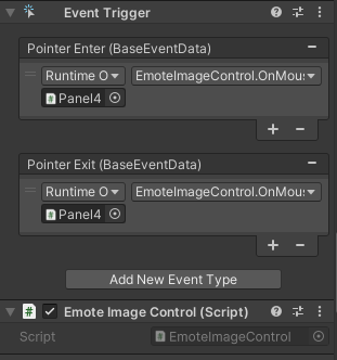이미지 컨트롤에서 애니메이터를 받아 이벤트 트리거에서 포인터가 Enter / Exit 되는 상황에 맞추어