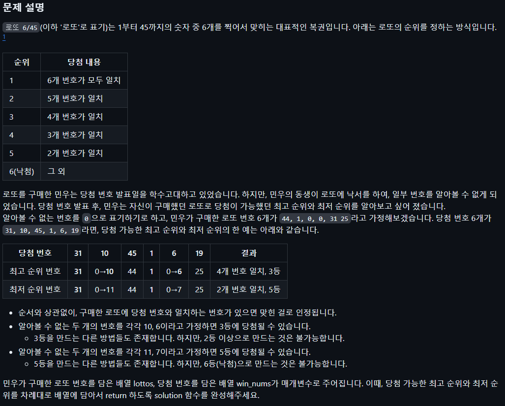 2. 오늘의 알고리즘 코드카타 - 로또의 최고 순위와 최저 순위