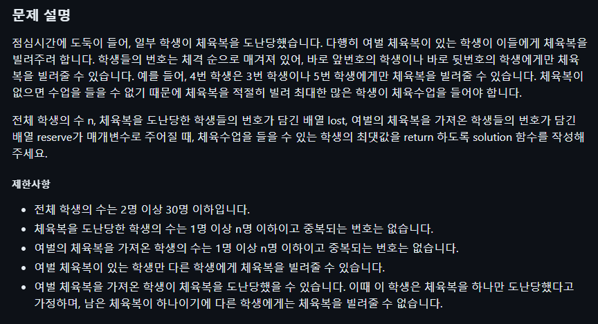 2. 오늘의 알고리즘 코드카타 - 체육복