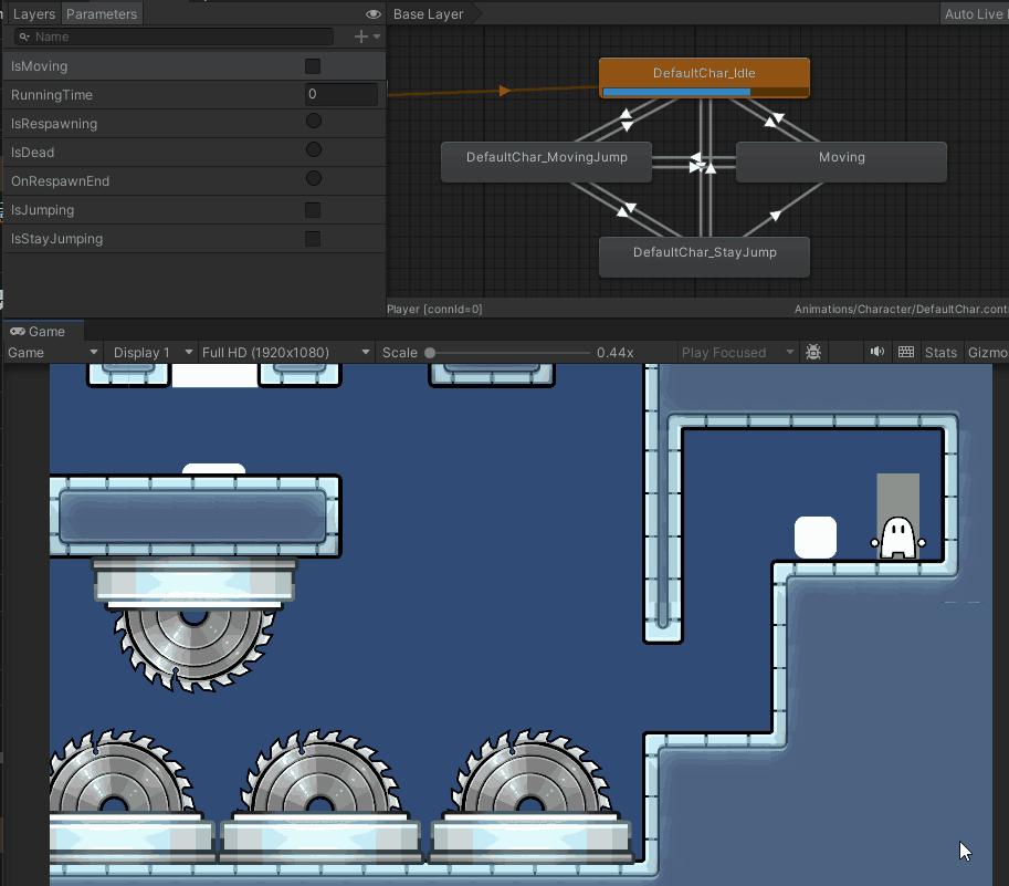 이렇게 사망과 리스폰을 적당히 처리하게 되어 기본적인 캐릭터 애니메이션을 넣어주게 되었다.