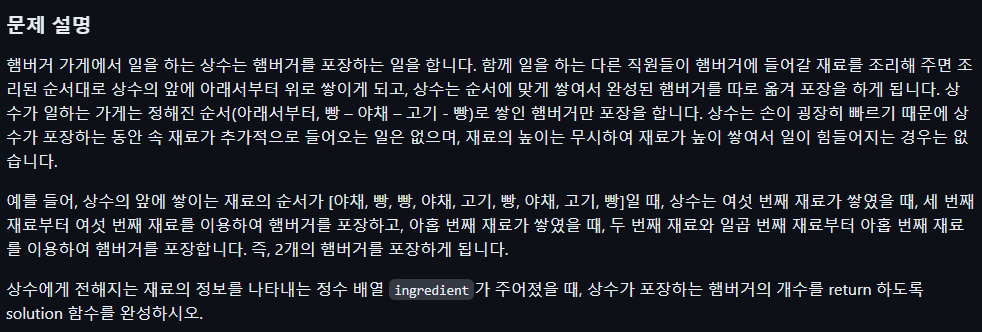 1. 오늘의 알고리즘 코드카타 - 햄버거 만들기