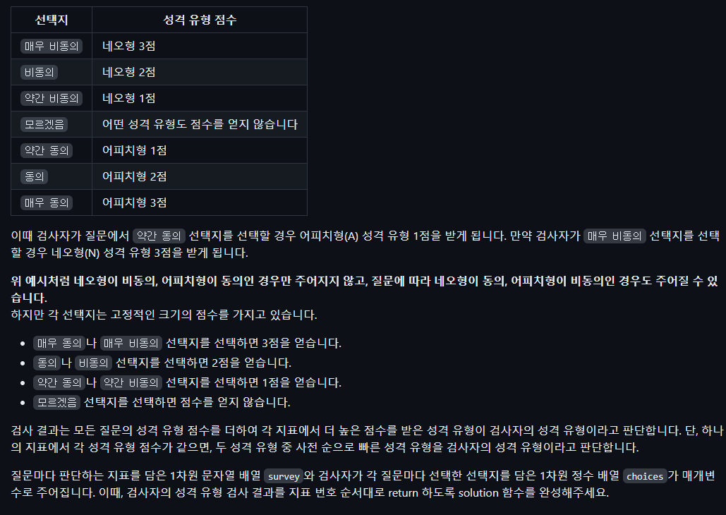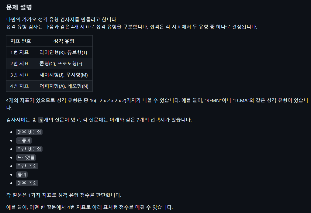 1.오늘의 알고리즘 코드카타 - 성격 유형 검사하기