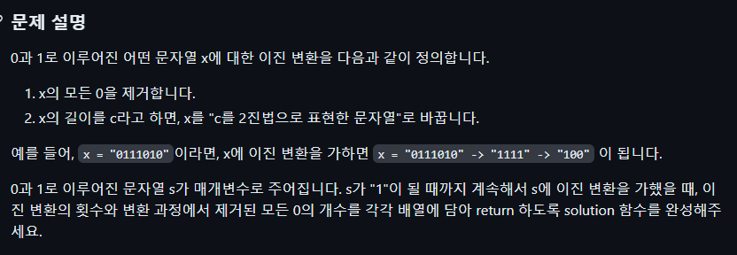 1. 오늘의 알고리즘 코드카타 - 이진 변환 반복하기